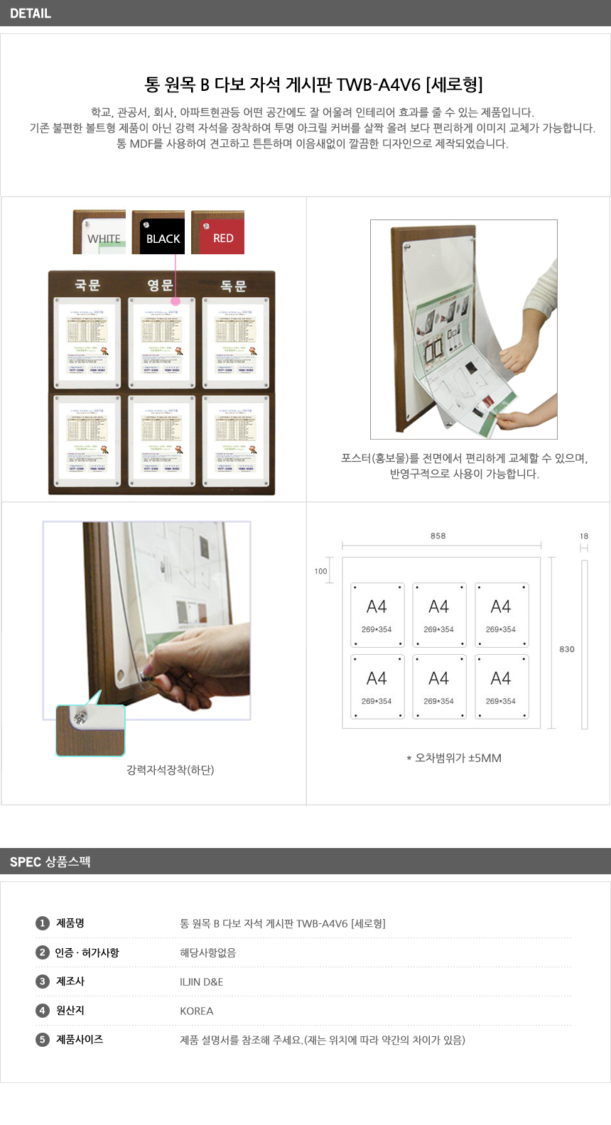 [ÀÏÁø] Åë ¿ø¸ñ B ´Ùº¸ ÀÚ¼® °Ô½ÃÆÇ(TWB-A4V6, A4 6¸Å ¼¼·ÎÇü 858x830mm, Çб³/°ü°ø¼­/ȸ»ç/¾ÆÆÄÆ® Çö°ü °Ô½ÃÆÇ, °­·ÂÀÚ¼® °Ô½ÃÆÇ)=>Á¦Ç°´ÜÁ¾!