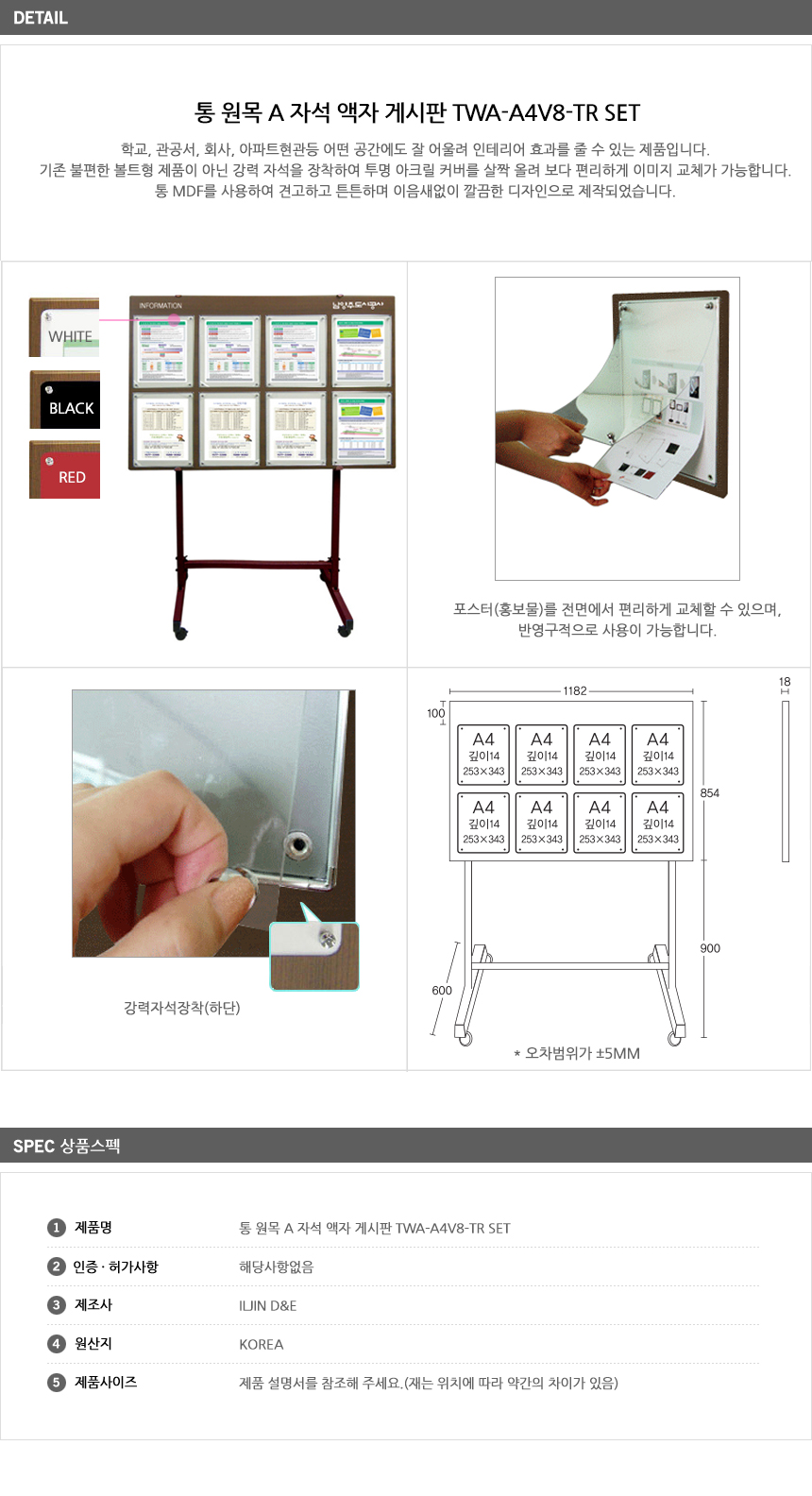[ÀÏÁø] Åë ¿ø¸ñ A ÀÚ¼® ¾×ÀÚ °Ô½ÃÆÇ(TWA-A4V8, À̵¿½Ä¼¼Æ®, A4 8¸Å °¡·ÎÇü 1182x854mm, Çб³/°ü°ø¼­/ȸ»ç/¾ÆÆÄÆ® Çö°ü, °­·ÂÀÚ¼® ¾×ÀÚ °Ô½ÃÆÇ)=>Á¦Ç°´ÜÁ¾!
