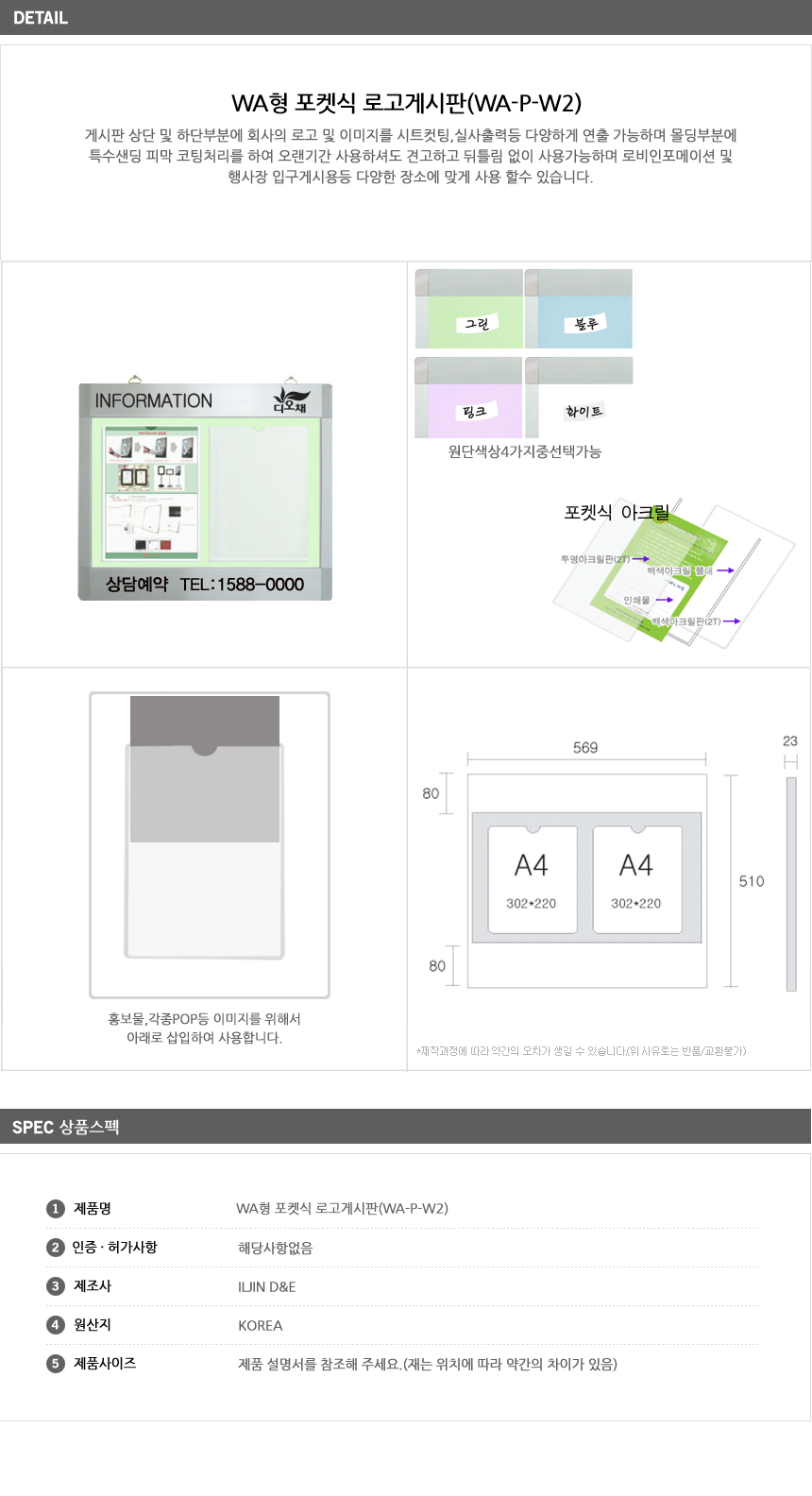 [ÀÏÁø] ¿¤¸®º£ÀÌÅÍ ¼³Ä¡ °Ô½ÃÆÇ/WAÇü Æ÷ÄÏ½Ä ·Î°í °Ô½ÃÆÇ(WA-P-W2, A4 2¸Å 569x510mm, °¡·ÎÇü, ·Îºñ ÀÎÆ÷¸ÞÀ̼Ç/Çà»çÀå ÀÔ±¸)