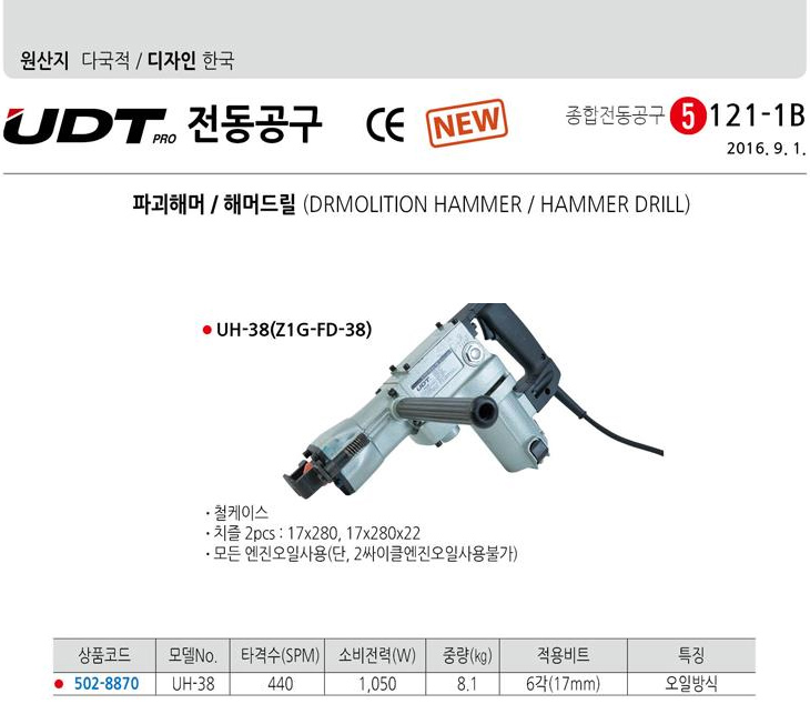 [UDT] ÆÄ±«ÇظÓ/ÆÄ±«ÇÔ¸¶(UH-38, 440SPM, 1050Watt, ¿ÀÀϹæ½Ä, 17mm 6°¢ºñÆ®, öÄÉÀ̽º ¹× Ä¡Áñ 2°³, ÄÜÅ©¸®Æ®/¾Ï¼®ÆÄ¼â/´ÙÁö±â/ȨÆÄ±â/Àý´Ü)