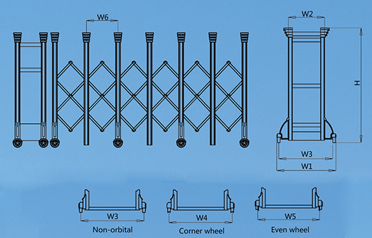 H = 1600mm, W1 = 850mm, W2 = 520mm, W3 = 780mm, W6 = 400mm