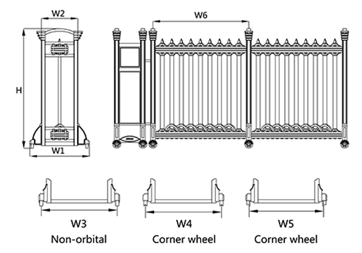 H = 1730mm, W1 = 850mm, W2 = 520mm, W3 = 780mm, W6 = 1350mm