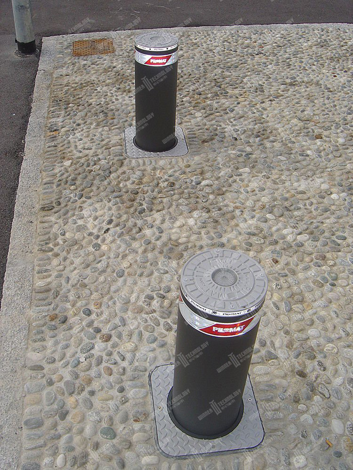 Cilinder: steel mode FE37 painted anthracite Cilinder Height: 600 mm. Cilinder Diameter 220 mm. Cilinder Thickness: 4 Moving criteria: Pneumatic Moving Speed: 5 cm./s. Connection line to SP station: 10 mt. Housing frame: yes Counter-frame to be walled in: yes Moving cylinder head: checkered plate Category Retractable Bollard - Retractable Bollard