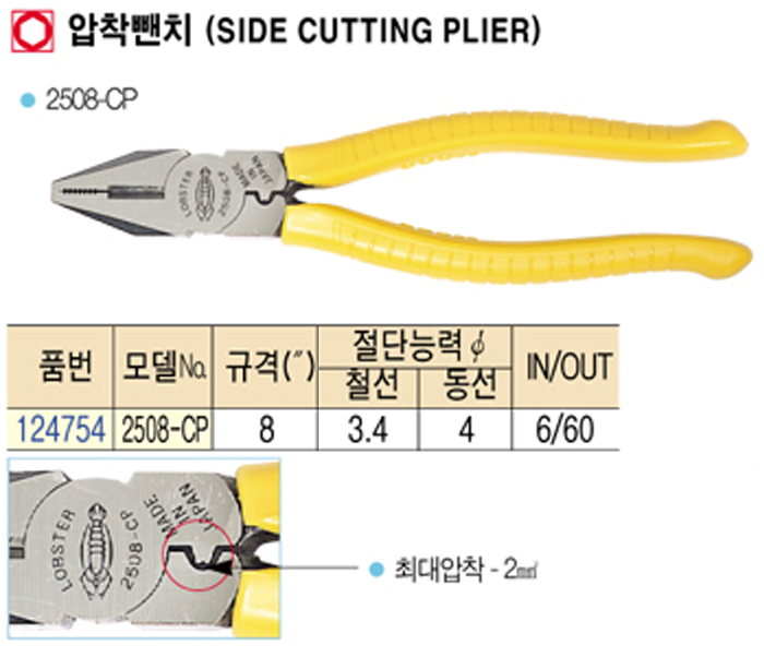 [·Îº¸½ºÅÍ] ¾ÐÂø»«Ä¡(Side cutting plier) 8"(2508-CP):5/29 ÇöÀç ÀϽÃǰÀý!!