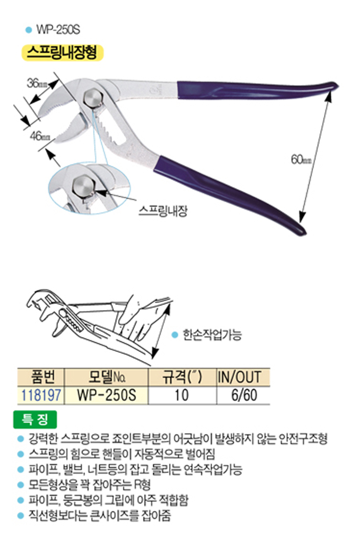 [·Îº¸½ºÅÍ] ¿öÅÍ ÆßÇÁ ÇöóÀ̾î (Water pump plier) ½ºÇÁ¸µ³»ÀåÇü WP-250S