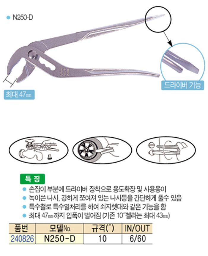[·Îº¸½ºÅÍ] ¿öÅÍ ÆßÇÁ ÇöóÀ̾î (Water pump plier) N250-D