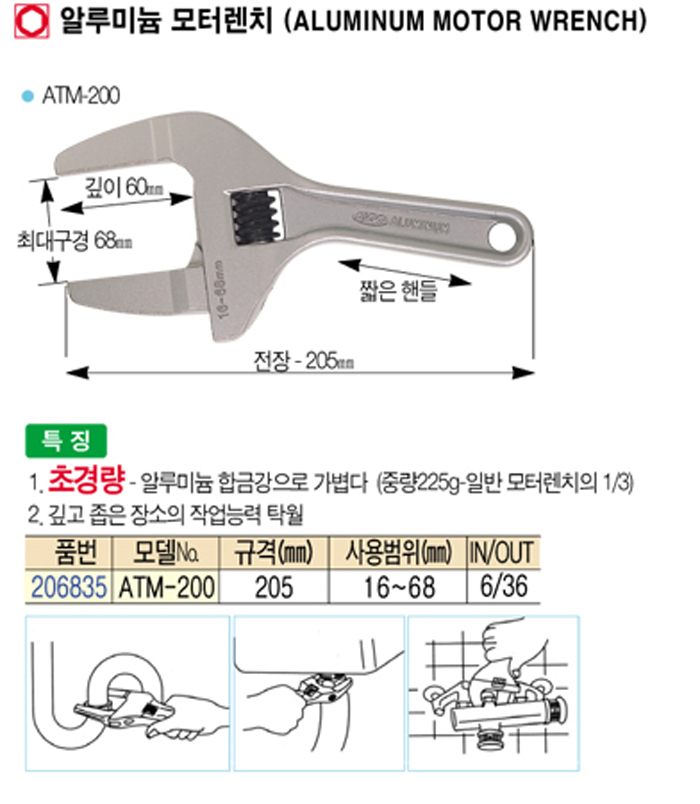 [¾ÆÀ̰í] ¾Ë·ç¹Ì´½ ¸ðÅÍ·»Ä¡(Aluminum motor wrench) ATM-200