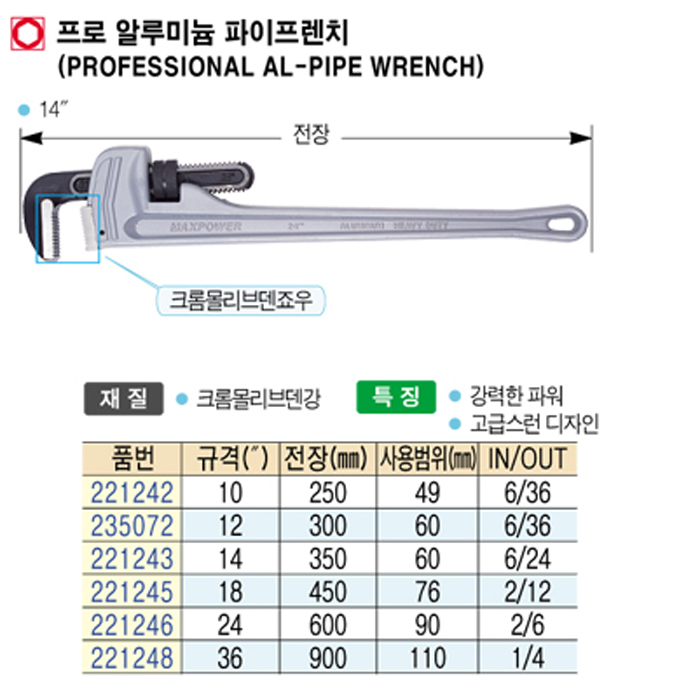 [¸Æ½ºÆÄ¿ö] ÇÁ·Î ¾Ë·ç¹Ì´½ ÆÄÀÌÇÁ·»Ä¡(Professional al-pipe wrench) 10