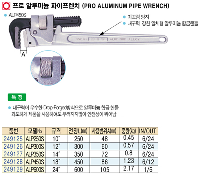 [È÷Æ®] ÇÁ·Î ¾Ë·ç¹Ì´½ ÆÄÀÌÇÁ·»Ä¡(Pro aluminum pipe wrench) ALP450S