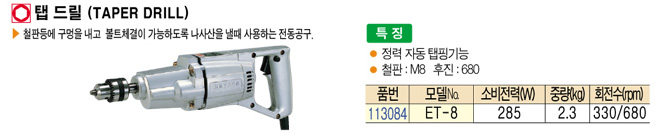 »ç¾ç # ´É·Â: öÆÇ8mm, ¾Ë·ç¹Ì´½10mm, ÇÁ¶ó½ºÆ½14mm # ¼ÒºñÀü·Â(W): 285 # ȸÀü¼ö(rpm): ÀüÁø½Ã 330, ÈÄÁø½Ã 580 # Áß·®(Kg): 2.3 # ÄÚµå(m): 2.5