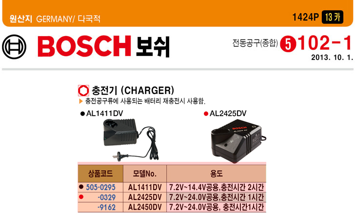 [BOSCH] Àüµ¿°ø±¸ ÃæÀü±â(AL1411DV, 7.2V~14.4°ø¿ë/ÃæÀü½Ã°£ 2½Ã°£)(Charger)