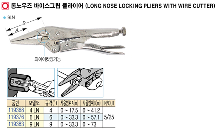 [¾îÀ©] ·Õ³ë¿ìÁî ¹ÙÀ̽º±×¸³ ÇöóÀ̾î(Long nose locking pliers with wire cutter) 4 LN