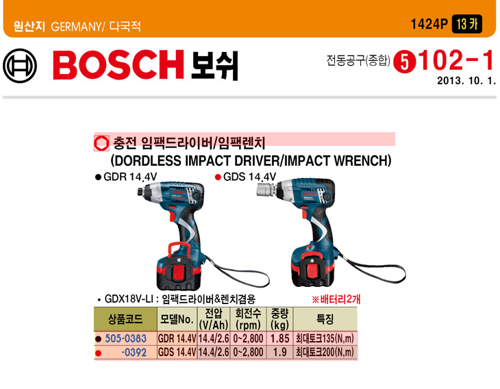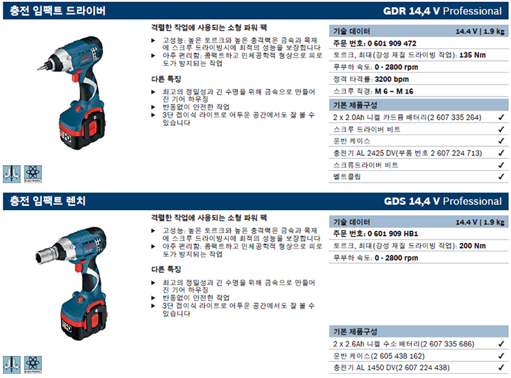 [BOSCH] ÃæÀü ÀÓÆÑÆ® ·»Ä¡(GDS 14.4V, Ni-cd¹èÅ͸®/14.4V/2.6Ah)(Cordless Impact Wrench)