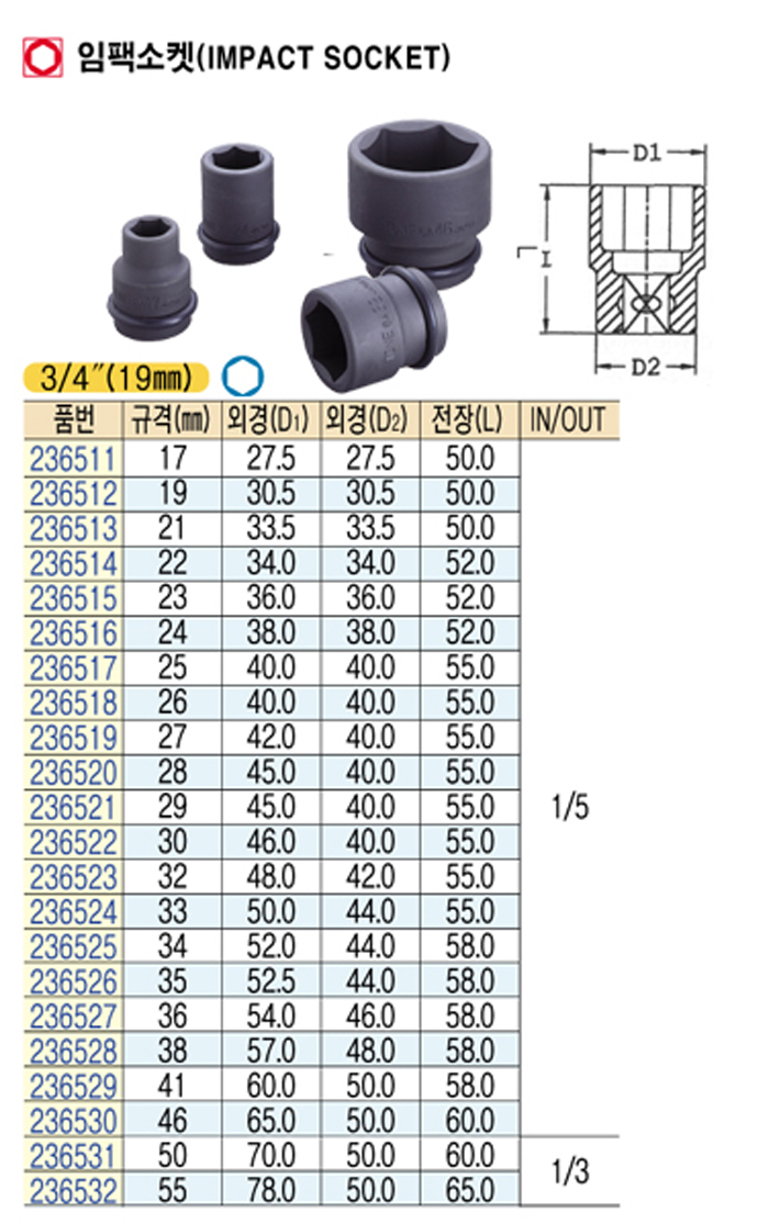 [Åä³×] ÀÓÆÑ¼ÒÄÏ(Impact socket) 3/4"(19mm) 17~21mm