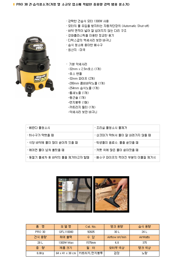 [¼¥¹é] °Ç½À½Ä Áø°øÃ»¼Ò±â(PRO30, 30¸®ÅÍ, 1600Watt)(Wet/Dry Vaccum Cleaner)=>Á¦Ç°´ÜÁ¾!