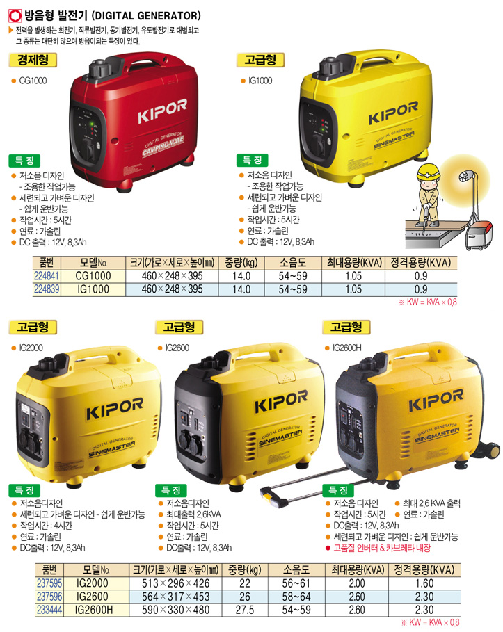 [KIPOR] IG2600 ¹æÀ½Çü ¹ßÀü±â (DIGITAL GENERATOR)