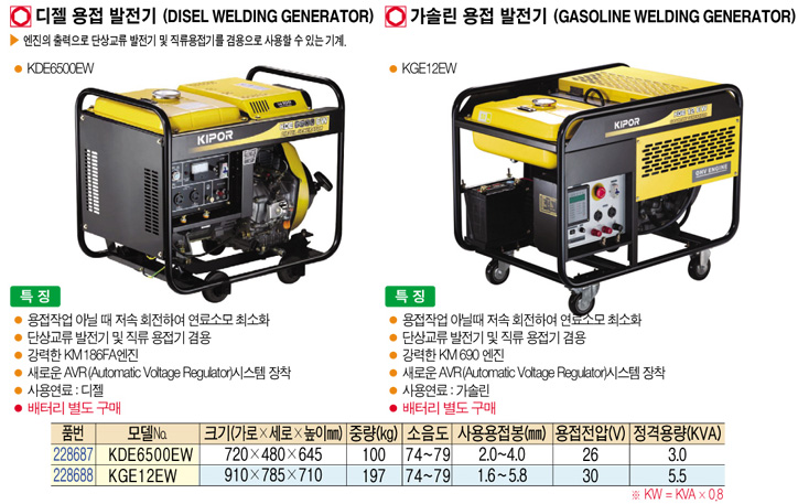 [KIPOR] KGE12EW °¡¼Ö¸° ¿ëÁ¢ ¹ßÀü±â (GASOLINE WELDING GENERATOR):´ÜÁ¾!!
