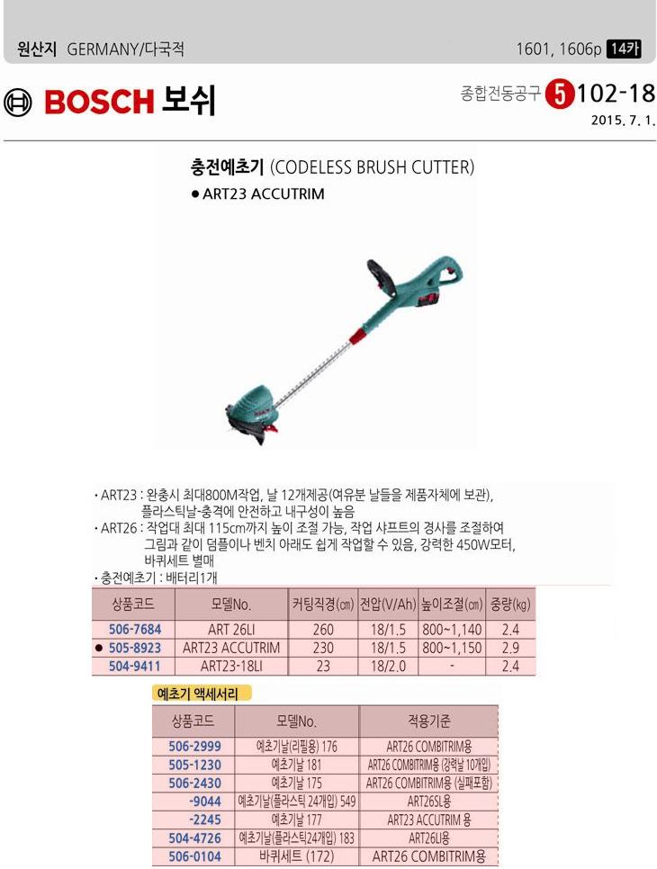 [BOSCH] º¸½¬ ÃæÀü¿¹Ãʱâ/ÃæÀü½Ä¿¹Ãʱâ/ÃæÀüÇü¿¹Ãʱâ(ART23-18LI, ³ôÀÌÁ¶ÀýÇü)