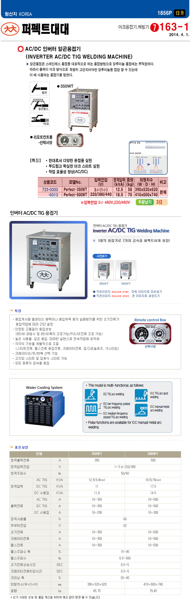 [ÆÛÆåÆ®] AC/DC ÀιöÅÍ ¾Ë°ï¿ëÁ¢±â/ÀιöÅÍ AC/DC TIG ¿ëÁ¢±â(PERFECT-350WT, »ï»ó220/380/440VAC, 12.5KVA, º»Ã¼)