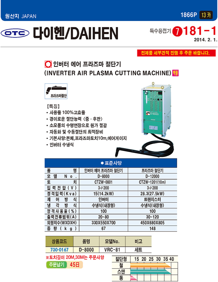 [´ÙÀÌÇî] ¿¡¾î ÇÁ¶óÁ Àý´Ü±â(D-8000/VRC-81)(Air PLASMA Cutting Machine)=>Á¦Ç°´ÜÁ¾!