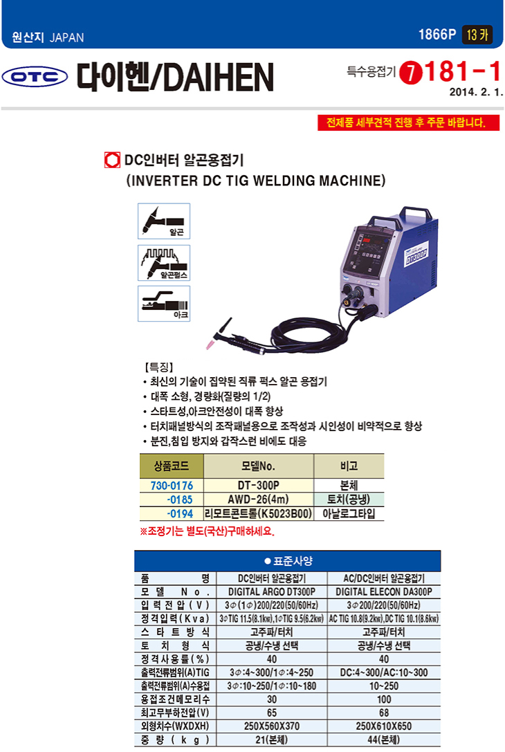 [´ÙÀÌÇî] DCÀιöÅÍ ¾Ë°ï¿ëÁ¢±â(DIGITAL ARGO DT-300P, º»Ã¼)(Inverter DC TIG Welding Machine)=>Á¦Ç°´ÜÁ¾!
