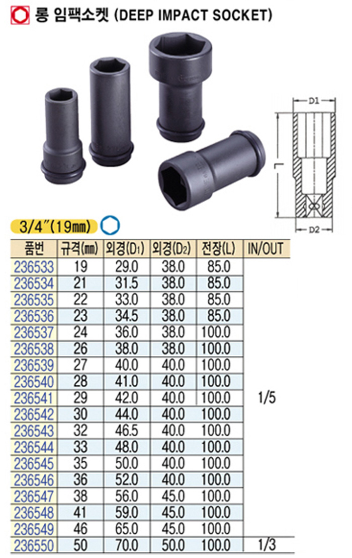[Åä³×] ·Õ ÀÓÆÑ¼ÒÄÏ(Deep impact socket) 3/4"(19mm) 50mm