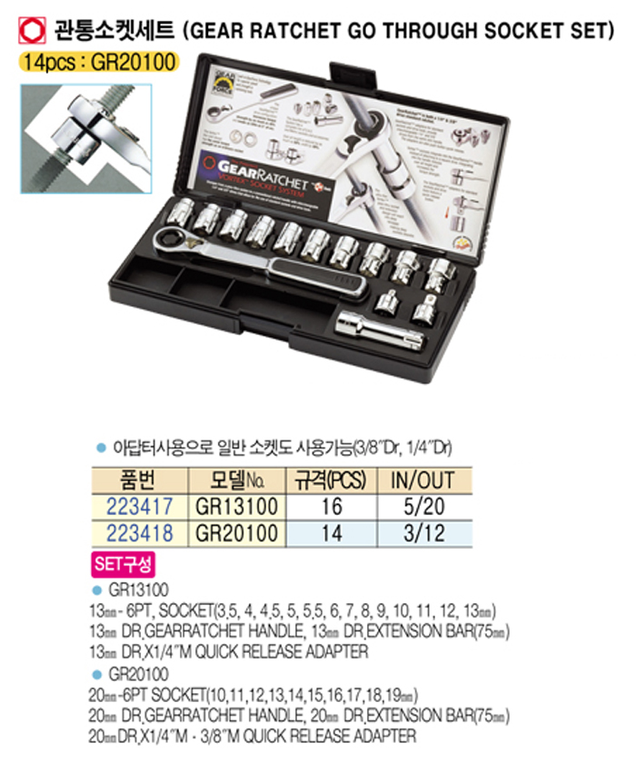 [¸®¿þÀÌ] °üÅë¼ÒÄϼ¼Æ®(Gear ratchet go through socket set) GR13100
