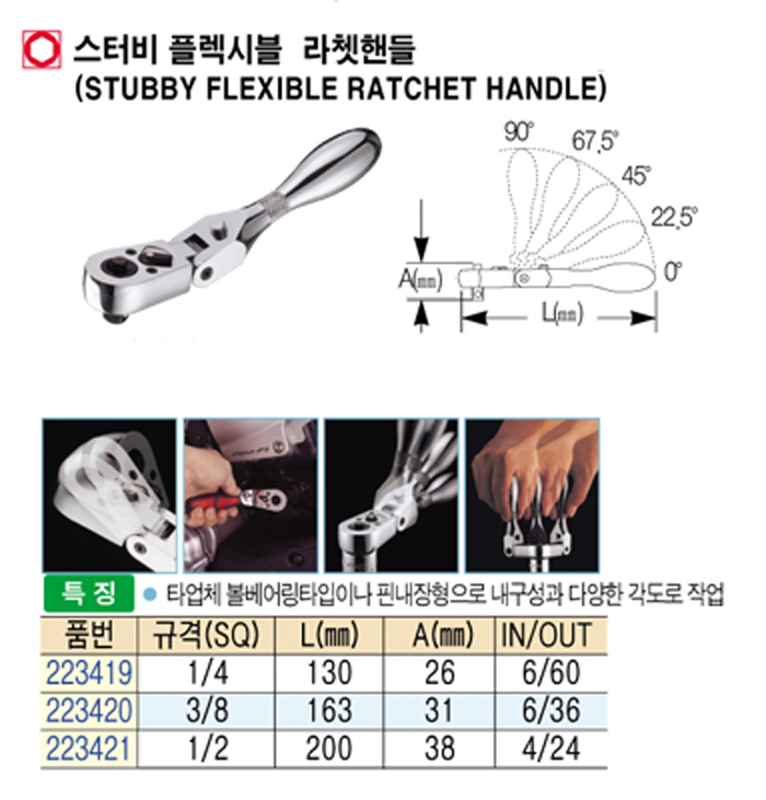 [¸®¿þÀÌ] ½ºÅͺñ Ç÷º½Ãºí ¶óÃÂÇÚµé(Stubby flexible ratchet handle) 3/8:´ÜÁ¾!!