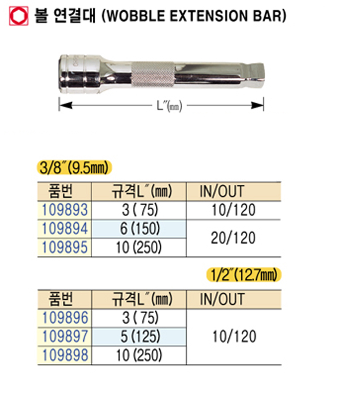 [¸®¿þÀÌ] º¼ ¿¬°á´ë(Wobble extension bar) 1/2"(12.7mm) 5