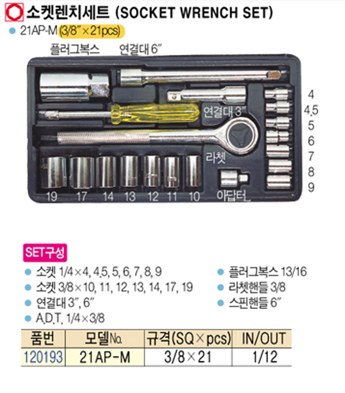 [OKT] ÇÚµå¼ÒÄÏ·»Ä¡¼¼Æ®(Socket wrench set) 21AP-M ǰ¹ø231-0017