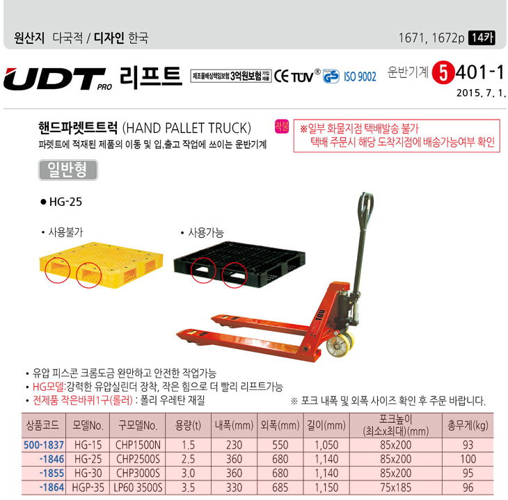 [UDT] ÇÚµå ÆÄ·¿Æ® Æ®·° (HG-30/CHP3000S, 3.0Ton)(Hand Pallet Truck)