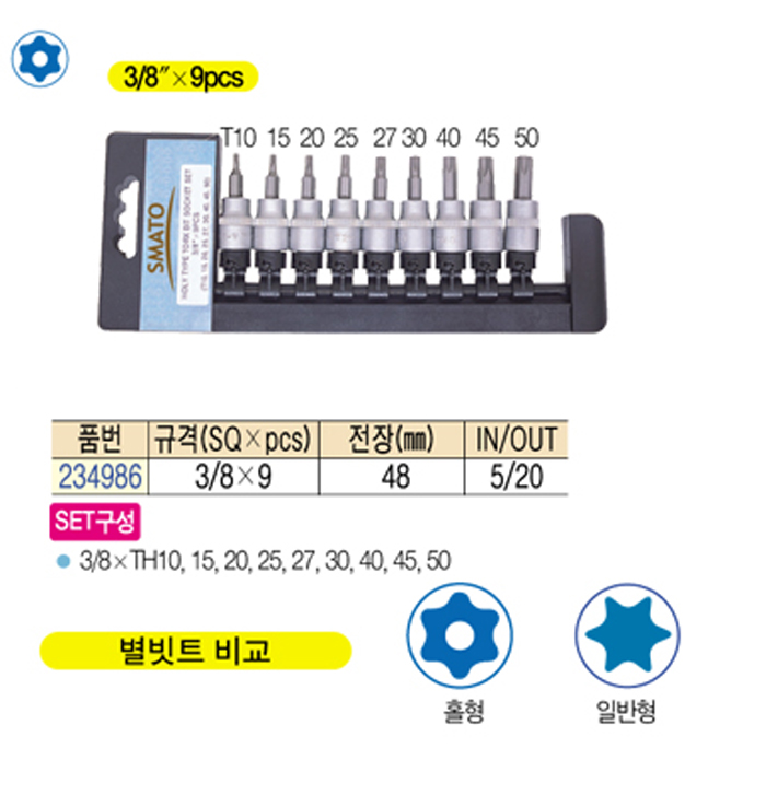 [½º¸¶Åä] ȦÇü º°ºøÆ® ¼ÒÄϼ¼Æ®(Hole type torx bit socket set) 3/8"x9pcs