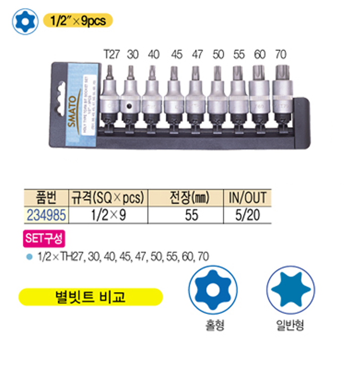 [½º¸¶Åä] ȦÇü º°ºøÆ® ¼ÒÄϼ¼Æ®(Hole type torx bit socket set) 1/2"x9pcs