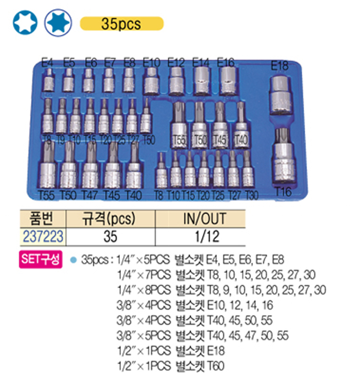 [½º¸¶Åä] ȦÇü º°ºøÆ® ¼ÒÄϼ¼Æ®(Hole type torx bit socket set) 35pcs