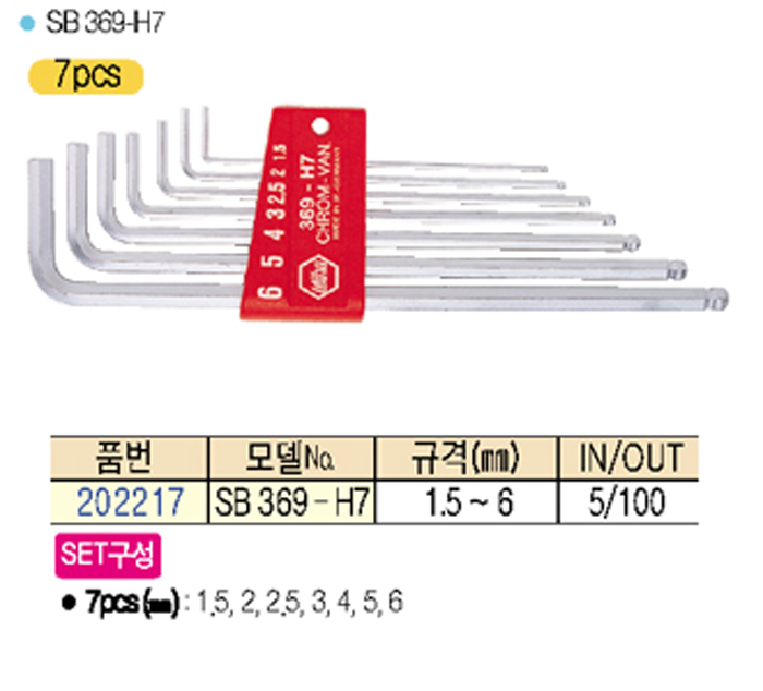 [ÀÌÈ­] ºíL·»Ä¡¼¼Æ®(Ball L-wrench set) SB 369-H7