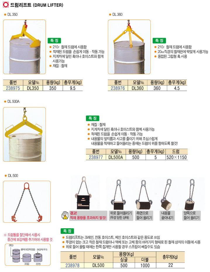[UDT] DL500 µå·³¸®ÇÁÆ® (DRUM LIFTER)((ºÎÇÏÁß·® ½Ì±Û 500Kg, ´õºí 1Åæ)