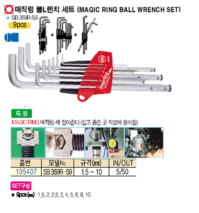 [ÀÌÈ­] ¸ÅÁ÷¸µ ºíL·»Ä¡ ¼¼Æ®(Masic ring ball wrench set) SB369R-S9