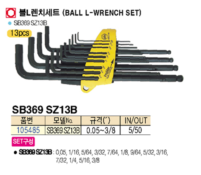[ÀÌÈ­] ºíL·»Ä¡ ¼¼Æ®(Ball L-wrench set) SB369 SZ13B