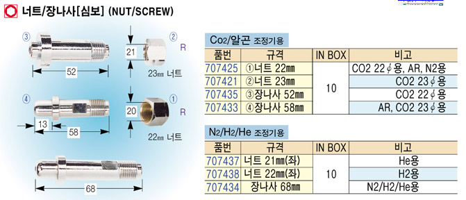 [MYUNGSHIN] À峪»ç 52mm(CO2/¾Ë°ï Á¶Á¤±â¿ë) ³ÊÆ®/À峪»ç(NUT/SCREW) (5°³¼¼Æ®)