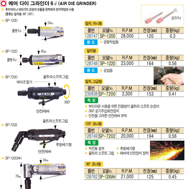 [SP¿¡¾î] SP-7202 ¿¡¾î ´ÙÀÌ ±×¶óÀδõ (AIR DIE GRINDER)