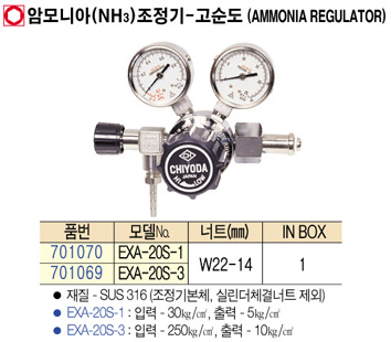 [Ä¡¿ä´Ù] EXA-20S-1 ¾Ï¸ð´Ï¾Æ(NH3) Á¶Á¤±â-°í¼øµµ(AMMONIA REGULATOR) (ÁÖ¹®Àü Àç°íÈ®ÀÎ ¿ä¸Á, ±³È¯/¹Ýǰ ºÒ°¡´É ǰ¸ñ)