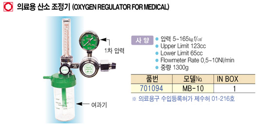 [¸Þ½ºÄÚ] MS-15 (±¸. MB-10)ÀÇ·á¿ë »ê¼Ò Á¶Á¤±â(OXYGEN REGULATOR FOR MEDICAL)