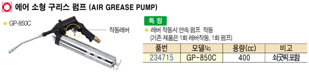[GISON] GP-850C ¿¡¾î ¼ÒÇü ±¸¸®½º ÆßÇÁ (AIR GREASE PUMP):´ÜÁ¾!!