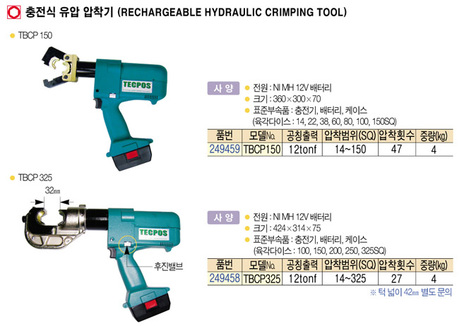 [´ëÁøÀ¯¾Ð] TBCP150 ÃæÀü½Ä À¯¾Ð À¯¾Ð±â(RECHARGEABLE HYDRAULIC CRIMPING TOOL):´ÜÁ¾!!