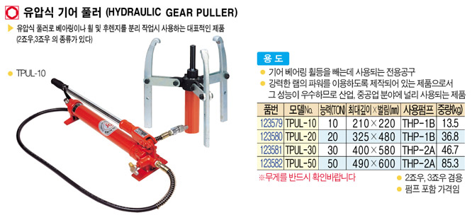 [´ëÁøÀ¯¾Ð] TPUL-20 À¯¾Ð½Ä ±â¾î Ç®·¯(HYDRAULIC GEAR PULLER):ÆßÇÁº°µµ