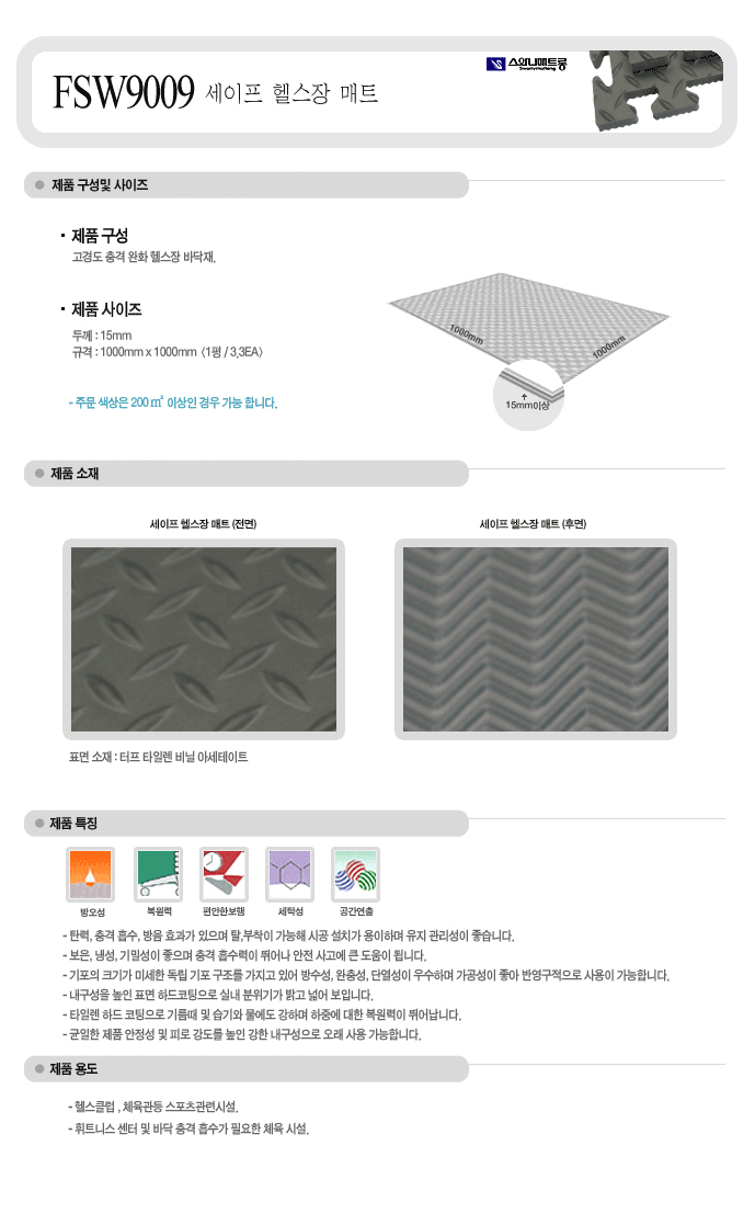 [½º¿Í´Ï] ÁøÈ¸»ö ¼¼ÀÌÇÁ 15mm ÇコÀå ¸ÅÆ®(FSW7019, 1000x1000mm)(°ßÀû¿äû)(ÁÖ¹®»ý»êǰ:³³±â 1~2´Þ ¼Ò¿ä)=>ŸÀÏ·» 23mm ½ºÆ÷Ã÷ ¸ÅÆ®(1000x1000mm