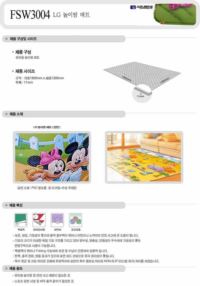 [½º¿Í´Ï]FSW3004 LG ³îÀÌ¹æ ¸ÅÆ® 130cm*190cm