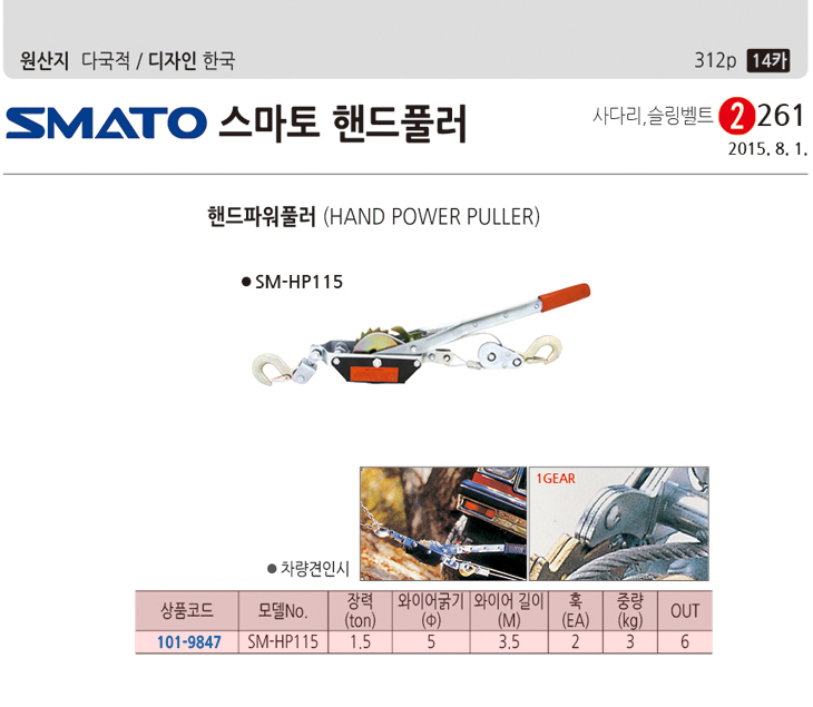 [½º¸¶Åä] ÇÚµåÇ®·¯/ÇÚµå ÆÄ¿ö Ç®·¯(SM-HP115, 1.5TON, 1Gear, Â÷·®°ßÀνÃ)(Hand Power Puller)