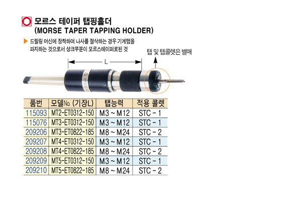[»óÁøÁ¤°ø] MT4-ET0822-185 ¸ð¸£½º Å×ÀÌÆÛ ÅÇÇÎȦ´õ (MORSE TAPER TAPPING HOLDER)