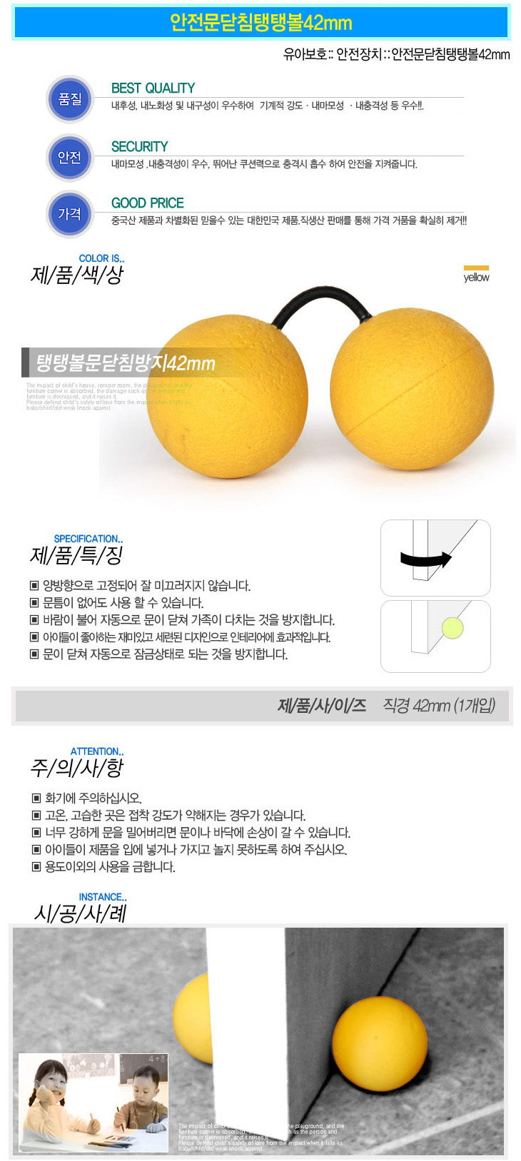 [LP]¾ÈÀü¹®´Ýħ ÅÊÅʺ¼(42mm,µµ¾î½ºÅäÆÛ/¹®´ÝÈû¹æÁö/¼Õ³¢ÀÓ¹æÁö)(Child safety door stopper)